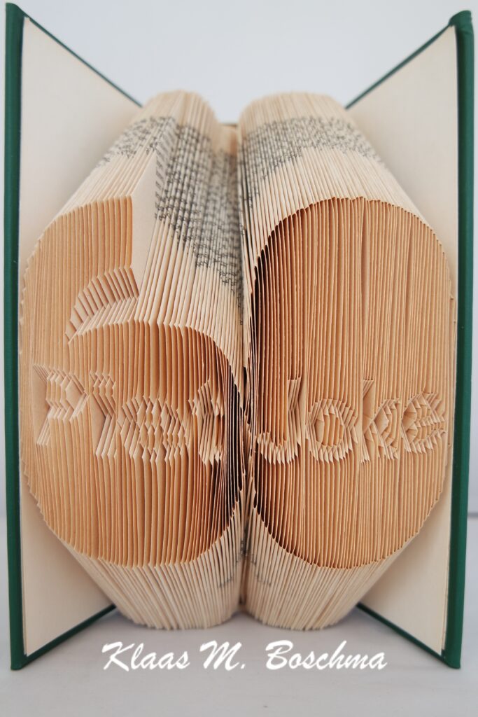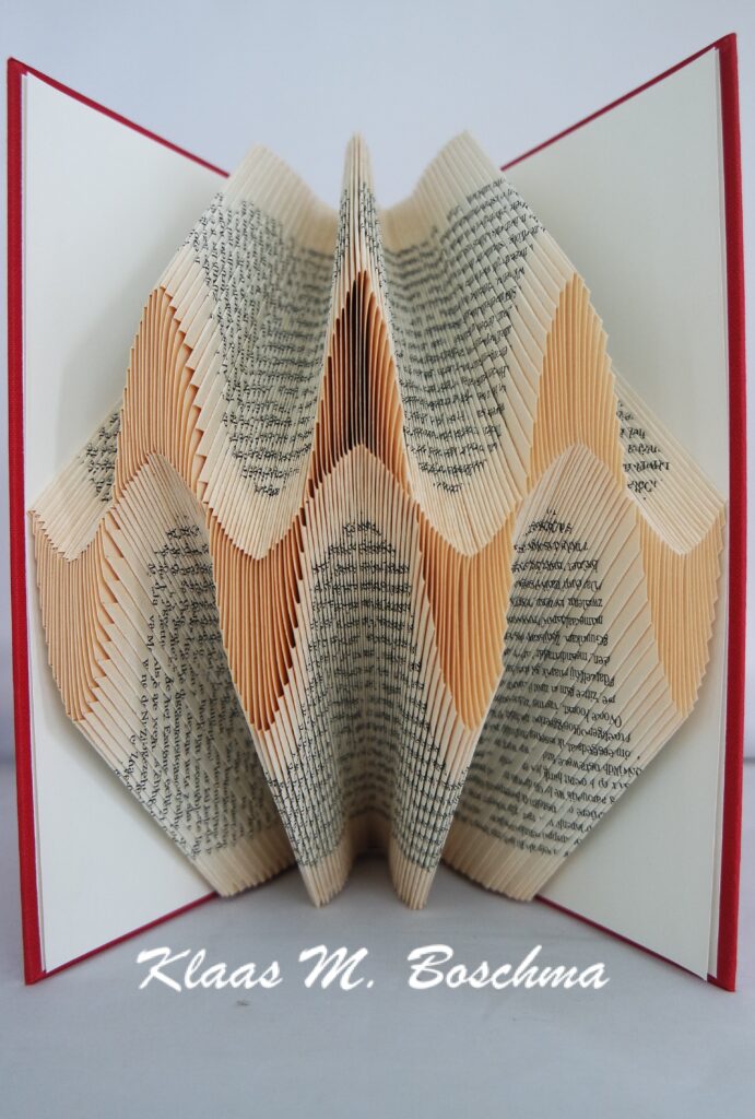 Door bladzijden van een boek op een bepaalde manier te vouwen creëer ik beelden of vormen. Hierdoor ontstaat er een bijzonder kunstwerkje en krijgt het boek een tweede leven. Zo’n boek in de boekenkast is een mooi gespreksonderwerp.
